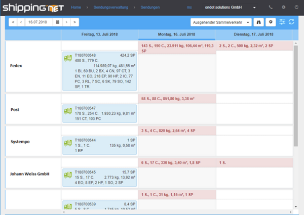 Disponieren Sie Ihre Sendungen in einem übersichtlichen Kalender. Auf Basis des automatischen Routings sind die Sendungen bereits vordisponiert. Sie können gesamte Transporte bzw. einzelne Sendungen mit Drag & Drop verschieben. Wie immer werden Sie auch hier durch äußerst sprechende Icons über den aktuellen Status Ihrer Transporte informiert.