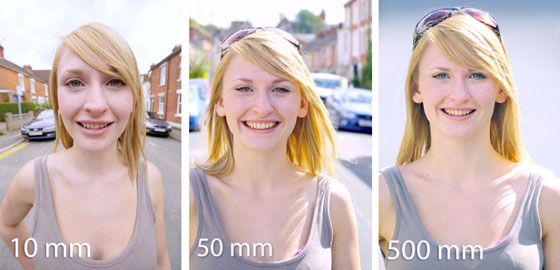 Zu kleine Brennweiten bringen zwar mehr Information in ein Bild (Gesamte Familie passt auf Selfi-Kamera). Dies führt aber zur einer perspektivischen Verzeichnung. D.h. Augen, Nase und Lippen wirken stark vergrößert, während die Ohren verkümmert sind.